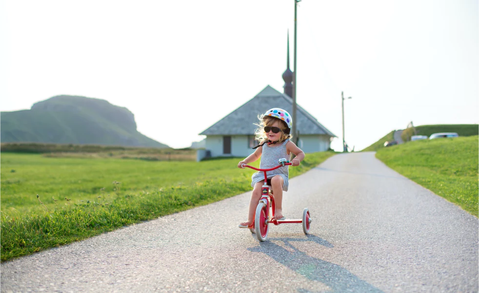 Skift mellem forskellige linser, stænger eller hovudbånd med et enkelt klik til forskellige aktiviteter eller miljøer. Vælg verdens mest alsidige solbriller til børn. Tilgængelig til både 0-2 år og 2-5 år.